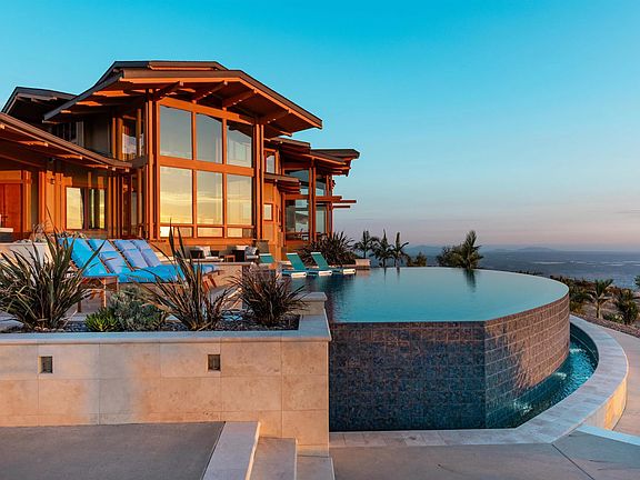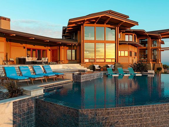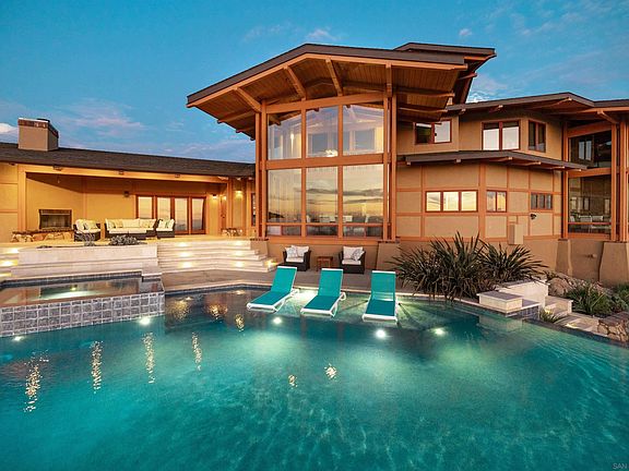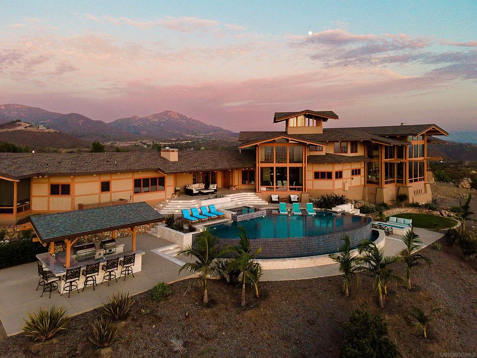 This exquisite luxury property, custom-designed by renowned architect Roger Mohling, offers an unparalleled living experience with ocean and sunset views from all rooms. Perched on a stunning landscape with panoramic views, the home exudes a lodge-like atmosphere, featuring exposed Douglas Fir Wood Beams, rich Brazilian Cherry Wood floors, and meticulously crafted stonework. The stained concrete floors blend seamlessly with the natural materials, enhancing the home’s earthy elegance. The chef’s dream kitchen is equipped with newer high-end appliances, complemented by quartz countertops, creating the perfect space for culinary excellence. The primary retreat offers a serene escape, complete with a cozy fireplace, his-and-her closets, and floor-to-ceiling windows that capture breathtaking views of city lights and panoramic sunset views. Enjoy new saltwater pool and spa by Majestic Pools. Included in this sale is an additional 42 ACRES for a total of 60 ACRES!!! The second parcel can be subdivided. The property is zoned for horses and agriculture, offering endless possibilities for those seeking a rural lifestyle. Fully functional garden, mature fruit trees and a chicken coop with nesting boxes, perfect for fresh eggs. The property also includes a spacious shed for storage, and 60 solar panels, providing sustainable energy to reduce electricity costs. Additionally, there is a second storage shed ideal for tools or equipment, and a charming koi pond as you enter the home. The gated and secured driveway ensures privacy and exclusivity, making this a true sanctuary! No HOA -