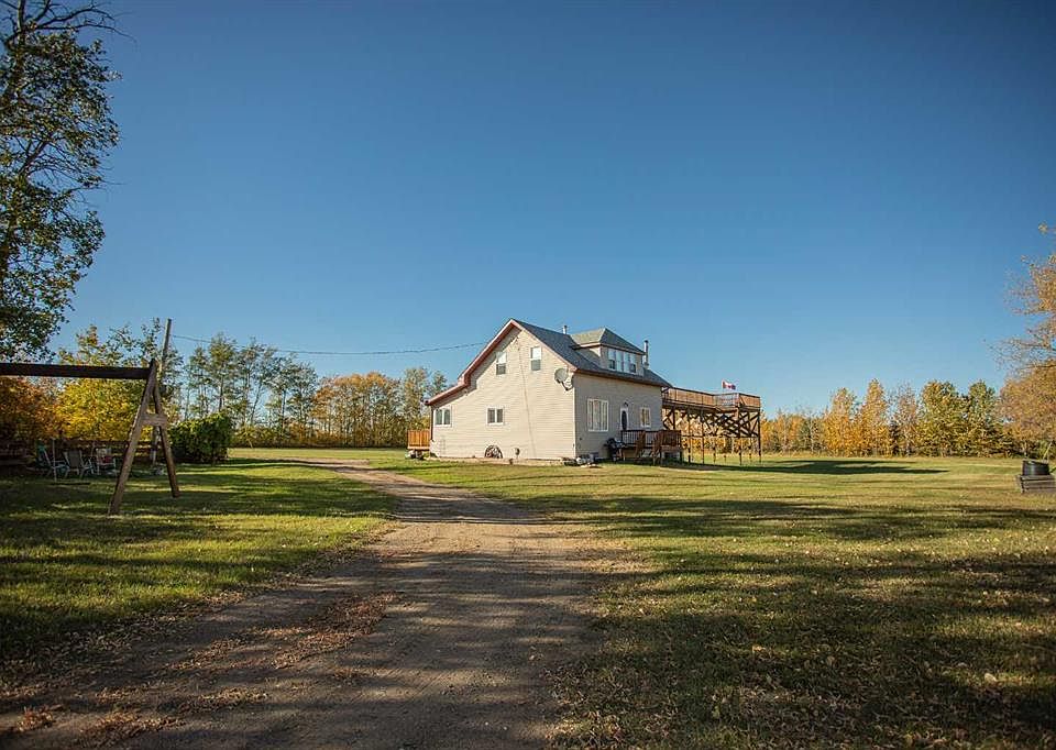 A HIDDEN GEM !! This charismatic and welcoming country acreage offers everything that you would expect from a peaceful secluded oasis!! Approx. 30 minute drive east from town, tucked away among the quietness of nature is where you will find this piece of paradise. Stepping onto the property is like going back in time, where life was about the simple pleasures of families laughing together, and playing outdoors as birds' songs echo through the majestic trees! Share the wonderful stories about your childhood, as you create a huge garden plot to enjoy the heavenly flavours of fruits and vegetables plucked directly from your own gardens, or bask in the splendour of the outdoors as you explore all the wonders that nature has to offer. This country farmhouse marks off everything and more with windows that frame picturesque views of stunning sunsets, alongside the open design allowing the natural rays of sunshine to stream in, giving the entire day to day area a lovely warm and inviting glow. The Kitchen boasts plenty of cabinetry and countertops with a gas stove and a pantry tucked away, perfect for the baker or chef in your life. A staircase leads up to the second level with a roomy, OVERSIZED Primary Suite, showcasing an en-suite and walk-in closet. Nearby is a nursery/bedroom, sure to be a place of relaxation after a day of fun in the sun. Included is the most incredible elevated deck overlooking the acreage where you can spend quiet reflective mornings watching the sunrise, peaceful afternoon naps, and savouring memorable moments with the ones you love while enjoying endless-starry Northern night skies.The Sitting Room offers plenty of wall space to showcase all of your adventures with a large window that overlooks the yard. A good size bedroom on the main level situates itself nicely for friends or family, alongside the main bath showcasing a tub/shower combo and laundry area. Meanwhile, the lower level is the perfect space to let your creativity flow whether that's a space for all your arts and crafts, a play room for the children, a secondary living room for those comfy and cozy movie nights, or whatever your heart desires. Outside boasts PLENTY of parking for your RV, storage for the boat, and all your toys ! If you have been searching for the perfect acreage that's private, peaceful, and a perfect escape, I know I have found the place for you ! The ambiance of this "Simpler Time Lifestyle" is here…