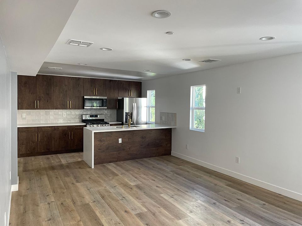 **ONLY 2 UNITS LEFT** Newly Constructed 5 Br + 3.5 Ba private Townhome-Style Unit with PRIVATE BACKYARD available for lease in East Hollywood! Available to move in immediately. This Brand New Contemporary 4-Unit Complex is comprised of 2 duplexes located in the lively and culturally rich neighborhood of East Hollywood nestled between Thai Town and Little Armenia. Within a mile radius, you will find just about everything you may need from a large and brand new Target to some of the best Thai food, great coffee shops, major bus, and train lines, parks, grocers, schools, and more. Location aside, this unit checks all the boxes of today's savvy city renters--rooms dispersed among 3 floors creating a sense of privacy, 3 balconies providing outdoor space, in-unit laundry, a large farmhouse sink in the kitchen island, sleek cabinetry, marbled bathroom tiling and gold/brass hardware giving the home a luxurious touch. Not to mention the master bedroom which has his and hers closets, an en suite bathroom, and a private balcony. Includes 2 dedicated parking spaces. Tenant pays for all utilities (water/trash/gas/electric/internet).