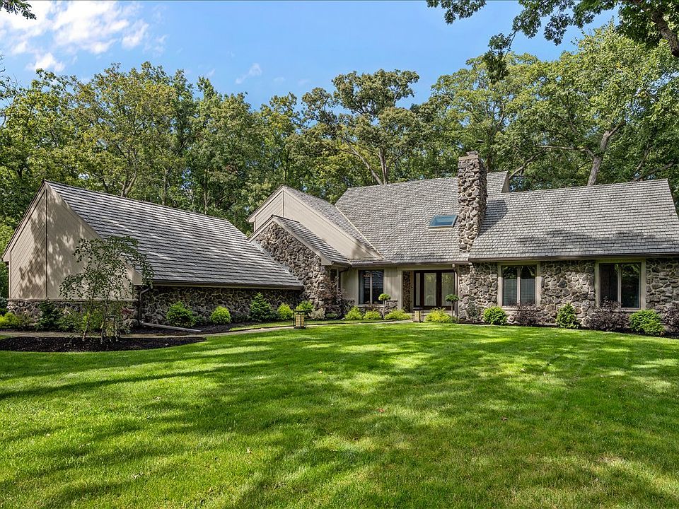 Perched on a small hill at the end of a sunny cul-de-sac, this 1.75-acre verdant retreat has been meticulously and thoughtfully updated throughout. The open floorplan with its main floor primary suite offers perfection in every detail and a warm ambiance permeates throughout the entire home. Newer, oversized windows load each room with natural light and provide panoramic views of the meticulously manicured gardens. The exquisite kitchen was renovated less than a year ago and offers professional grade appliances, extensive counter space and an amazing sun-filled family breakfast area. The expansive great room features a stately fireplace, quaint wet bar and floor to ceiling windows open onto the deck. Retreat to the luxurious main floor primary suite, and a serene master bedroom awaits with a luxurious spa-like primary bathroom with its deep soaking tub and fabulous, oversized steam shower, beautiful tile and custom cabinetry, and a spacious walk-in closet. The second floor offers three additional en-suite bedrooms, each with ample closet space and features a convenient second-floor laundry room. The spacious lower level showcases a handsome wet bar, a large game room that opens into a well-designed work out area, ample storage and an additional flex room perfect for a 5th bedroom or 2nd office, or craft room. Outside, escape into the outdoor oasis spanning across 1.75 acres of manicured landscape with complete privacy across the entire property. Approx. 4800 sq ft, 3 car garage, serene privacy, and a stellar location- your forever home awaits!