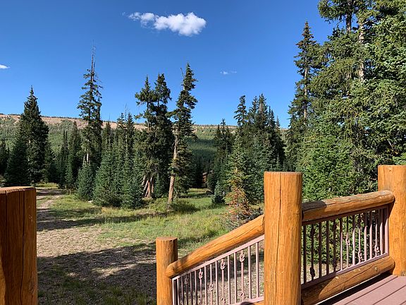 This beautifully built log cabin is nestled among the Pine and Aspen trees and backs up to the forest with breathtaking views of the mountains. The property features two bedrooms, one of the bedrooms has beautiful pocket doors, a loft, one full bathroom, a gas stove that heats the home, beautiful deck and covered porch and a shed. The property is 3.26 acres including the one acre next door. Water is provided by a community well and there is a septic system There is power at the cabin. It comes furnished and includes the kitchen appliances. Just a short drive to Brian Head for activities, shopping and dining. Make a reasonable offer.