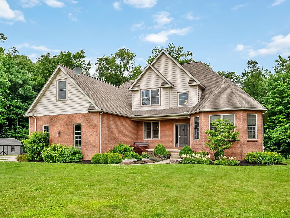 *** PRICE IMPROVEMENT: $750,000 *** Private Custom-Built Retreat on 5+ Wooded Acres in Delaware City School District! Nestled at the end of a private shared driveway, this stunning 4000+ sq ft custom-built 2-story home offers unmatched privacy, space, and elegance on over 5 wooded acres with a gorgeous views and a scenic ravine! Designed for comfort and flexibility, this 5-bedroom, 3.5-bath residence combines timeless craftsmanship with modern updates. Step into a light-filled interior featuring 9-foot ceilings, solid hardwood doors, rich hardwood floors, and recessed lighting throughout. The main floor boasts a spacious primary suite with an updated bath and walk in closet with ''closets by Design'' organization system, while the second floor includes a unique bonus room/4th bedroom above the garage complete with vaulted ceilings/skylights — perfect for guests, teens, or a home office! The gourmet kitchen is a chef's dream, with new quartzite countertops, two pantries, stainless steel appliances and custom cabinetry with pull-out shelving. Enjoy your morning coffee in the bright 4-season room, or relax outside on the expansive 14x40 deck with a built-in gazebo and lower level hot tub — perfect for entertaining or unwinding in nature. The full walk-out basement adds even more livable space with a hobby room, exercise room, rec room, and media room or optional 5th bedroom with attached full bath. Additional features include first-floor laundry, ''Nova Brik'' and insulated vinyl exterior, spacious storage shed, and a large 3-car side load garage. Located in the desirable Delaware City School District, this rare property blends luxury living with peaceful, wooded seclusion — just minutes from local amenities! Also featuring conveniences such as public water (Delco) and high speed internet! BONUS: SELLERS ARE INCLUDING THEIR 60' ZERO TURN MOWER (A $5000 VALUE)!