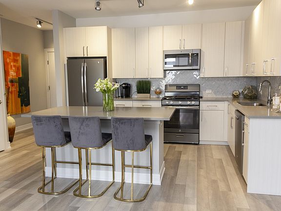 - Exterior features: Chef's Kitchen, Community Grills, EV Charging Stations, Emergency Lighting & Exit Lighting, En Suite Bathroom in Primary Bedroom, Heated parking, Kitchen Island, On-Call Property Management, Oversized Windows, Quartz Countertops, Secure Keyless Entry, Stainless Steel Appliances, TV Lounge, Under-Cabinet Lighting, Video Monitoring in Common Areas, Well-Lit Entrances & Hallways