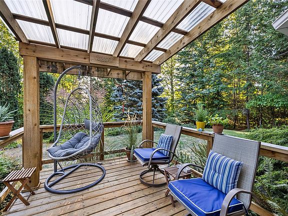 Open layoutHighlighted by hardwood floorsLarge windowsCozy wood stoveTwo lovely decks