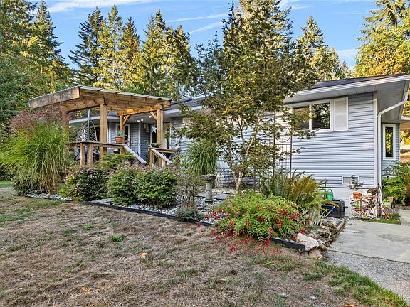 Situated in the South Wellington neighbourhood of Nanaimo, just minutes to the airport & all transportation options to the mainland, you will find this 2,163 sq ft rancher. Set on a private & picturesque 1.58-acre property, surrounded by beautiful grounds & mature landscaping, this home offers plenty of space both inside & out with multiple lifestyle options. The main portion of the home features an open layout w/ 3 bdrms & 2 bathrooms, highlighted by hardwood floors & large windows that bring in an abundance of light. The kitchen, dining & living areas flow seamlessly together. The rear wing of the home provides excellent flexibility ideal for hosting guests, family or easily converting into a secondary suite. This private area includes its own entrance, a spacious living room w/ cozy wood stove, a full bathroom and a large bedroom. Additional features include a heat pump, detached double garage, over height RV carport & two lovely decks, perfect for enjoying the peaceful setting.