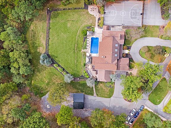Step into timeless luxury and modern comfort in this estate nestled on 6 acres. From the moment you pull in, you’re welcomed by beautifully manicured grounds, stately architecture, and an undeniable sense of retreat. This is more than a home, it’s a lifestyle. Inside, soaring ceilings and massive windows flood the living spaces with natural light. The main living area, anchored by a dramatic stone fireplace and warm wood beam ceilings, flows effortlessly into the gourmet kitchen — complete with stainless appliances, custom cabinetry, a statement island, and seating for a crowd. Every detail is thoughtfully designed for entertaining and everyday living. Five spacious bedrooms and five full bathrooms (plus two half baths) offer plenty of room for everyone, including a stunning master bedroom addition completed in 2024, creating the ultimate private retreat. The primary suite offers serene views, a spa-like bath, and luxe finishes throughout including a large walk-in-closet. Cozy up next to one of four fireplaces on cool evenings, or curl up in the reading nook framed by stunning architectural windows. Recent upgrades include: a new pool liner (2024), roof replacement (2021), fresh blacktop (2025), natural gas furnaces (2021), tankless water heater (2024), and a new water heater in the basement (2025). Outside, the resort-style amenities truly shine. Spend summer days lounging by the inground pool, gather for dinner under the covered patio, or shoot hoops on your private basketball court. Multiple outdoor living spaces make hosting effortless, whether you’re relaxing in the sun or entertaining under the stars. With its unique blend of charm, upgrades, and refined finishes, this home offers an unmatched living experience both inside and out. Come see what it feels like to live in a place where every day feels like a getaway. 24-48 hours notice for all showings, schedule your private tour today!