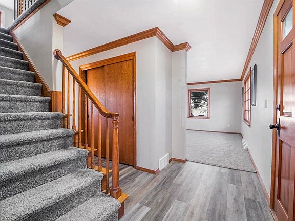 SPREAD OUT IN THIS 4BR, CLASSIC 2-story colonial which is close to Alicia Park the Fox River. Back up the moving van as everything inside out has been transformed w/updated flooring, painting, door to garage, some windows, bathrooms including tile shower in primary suite, kitchen, carpeting (hdwd flrs UP under per seller), furnace, wood-burning FP so much more. YOU WILL BE impressed w/the huge living room from front to back of home is great for entertaining or hosting gatherings, formal dining to showcase your fine dinnerware the expansive, sun-drenched family rm w/corner wood-burning fireplace. Upstairs is the primary suite w/fully tiled shower, very ROOMY BRs full bath. Lower Level has ofc area, movie/rec rm, half bath great storage. LEASE TO OWN option avail