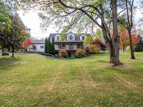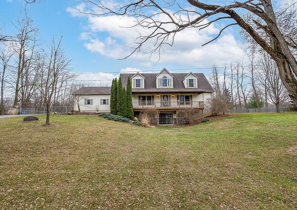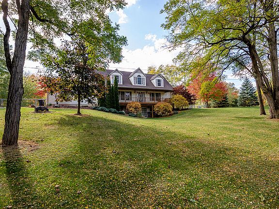 Beautiful Cape Cod on 1.9 acres. Offers open concept living with hardwood floors, large dining area & living room, fantastic kitchen with large prep island, stainless steel appliances & slider out to the patio for grilling & convenient access to the fenced back yard for kids & pets. Main floor laundry. Primary suite with large bathroom & abundant closet space as well as slider door access to the patio. 2nd main floor bedroom with attractive French Doors & 2nd full bath. The upstairs is a blank slate with over 800sqft of space this could be used as a large walk up attic storage space or easily finished into 2-3 bedrooms & an additional bathroom. The lower walkout level is also just waiting for your finishing touches. View of Silver Lake from the covered front porch. Att Garage & Pole Barn.