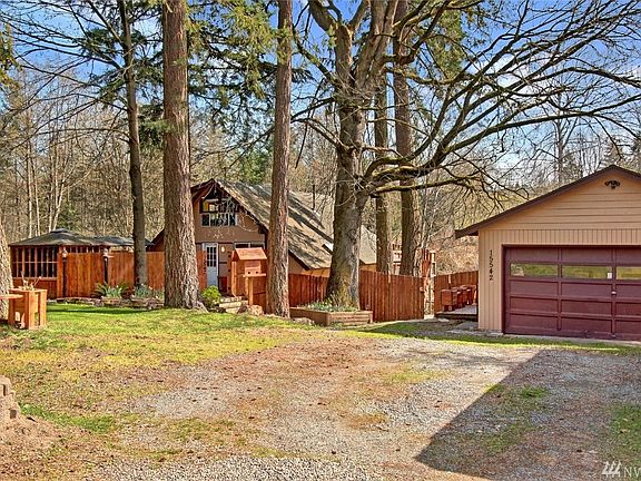 Charming and rustic A-Frame (the real thing! wait until you see the windows) in a close-in yet private setting. Versatile living areas on main and lower. Large bedroom up; smaller bedroom on main. En-suite bedroom on the lower level. Gravity auto-feed pellet stove on main for cozy heat. Generous storage. Newer water heater. Some white vinyl windows. Detached 2-car garage with drywalled and heated work/play space. Idyllic outdoor spaces including a firepit; some wetlands. Close to P&R & freeway.