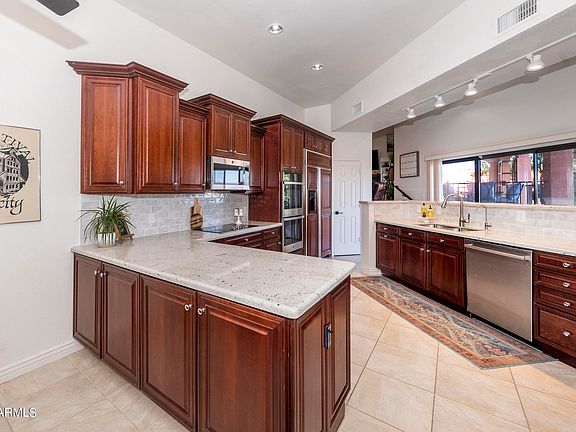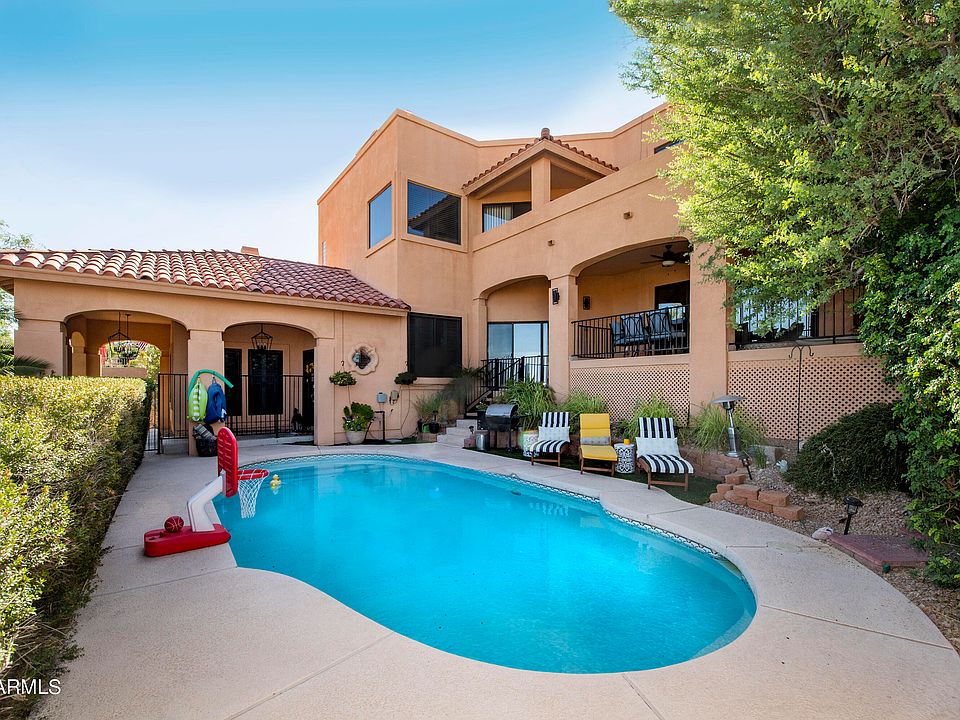 POTENTIAL INTEREST RATE BUY-DOWN OR CREDIT TOWARD CLOSING COSTS FOR BUYER This home has some of the best views in town. From Four Peaks to Red Rock including a direct view of the fountain. 2,935 sq ft, 4 bedroom, 3 1/2 bath. Family room with fireplace and large sliders to deck and pool. A expansive primary suite with fireplace, sitting area and access to private patio. Kitchen has new appliances, new granite countertops and tile back splash, double ovens, flat cooktop, pantry, eat in area with additional formal dining room. Large tile trough out with new carpet in all bedrooms. Fun caricature with hidden office hidden behind bookcase for privacy and storage. Family entertaining featuring pool and deck area with side yard dog run. HVAC replaced downstairs 2016. replaced in 2019 (excluding 2 upstairs). Flat roof resurfaced/replaced 2018.