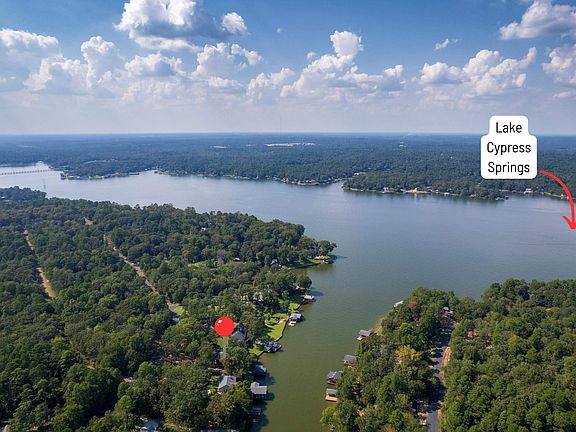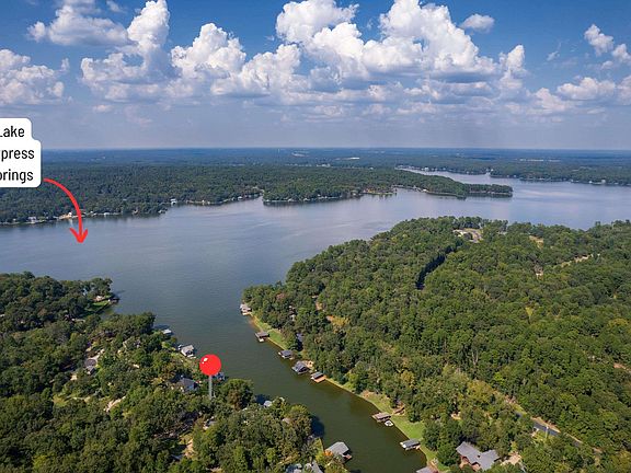Neat, modified A-frame, easterly-facing cedar cabin with 4 bedrooms and 2 baths and a 2-car carport. The exterior of this cabin has recently been repainted and is in great condition, and the roof was replaced in 2023. With 3 bedrooms and 2 baths in the main cabin, a separate room outside with A/C operates as a bunkroom. The cabin features pine plank floors in the living area, a soaring vaulted ceiling, open living concept, a stone-front wood-burning fireplace and a prow front with lots of windows to take advantage of the wonderful views. The upstairs main suite includes a deck with a great view of its own. Tucked just inside the mouth of a large cove, this property, with its boathouse with a single boat stall and double jet ski stall, sits in quiet, no-wake water, making it safe for kids to float and swim. The property includes Lots 282 & 283 across the street from the cabin where the septic dispersal takes place. Offered fully furnished, this home is ready for a new family to enjoy.