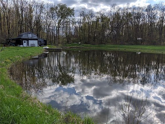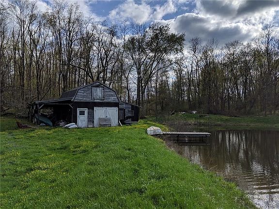 Dream opportunity for handyman's special on almost 3 acres with large pond, 4 car garage, small barn, and more! Work needed includes siding work, basement drainage, garage door spring replacement, and interior water damage (in one room downstairs from past upstairs bathroom issue). Over 2000 square feet with 3+ bedrooms and two full baths. Formal dining, enclosed 3 season lush finished porch overlooks back yard. 2+2+ tandem garage with 200V electric. Large stocked pond and dry hydrant! So much property for the price! Close to schools and minutes from the village! Opportunity awaits!