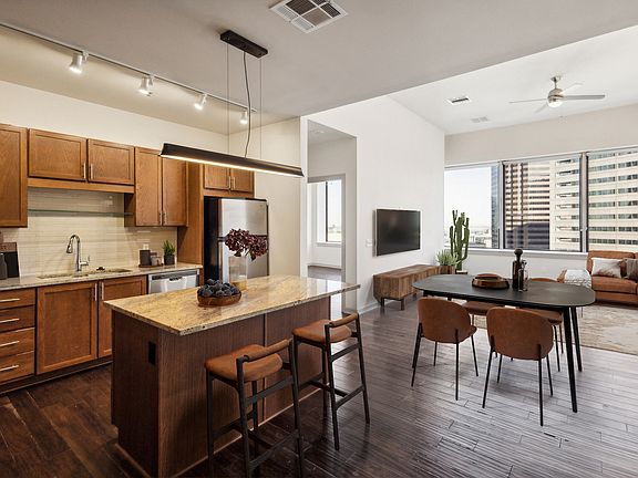 Discover brand new luxury apartments in Dallas, Texas, overlooking the colorful downtown cityscape and towering above the brand new Hilton Garden Inn and Elm Street Cask & Kitchen. This exciting urban community features a spectacular amenity package and is located in the middle of where you want to work, dine, and play. Come by for a no-hassle tour with our convenient, exclusive and complimentary valet parking!