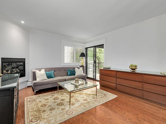 Stylish corner condo that feels more like a home! Featuring real hardwood floors, crown mouldings and timeless shaker cabinetry with under-cabinet lighting. The kitchen shines with stone countertops, a spacious island with storage, stainless steel appliances, and a lit glass display cabinet to showcase your favourites. Enjoy two pantries with slide-outs, built-in shelving, and abundant storage throughout. The bright primary suite boasts a walk-through closet to the ensuite, while the main bathroom is finished with elegant marble tile. California shutters dress the windows, while fresh paint and a cozy fireplace add warmth and charm. 5 minute walk to all that upper Johnston has to offer: Shopping, restaurants, banking, groceries. It's a must see!