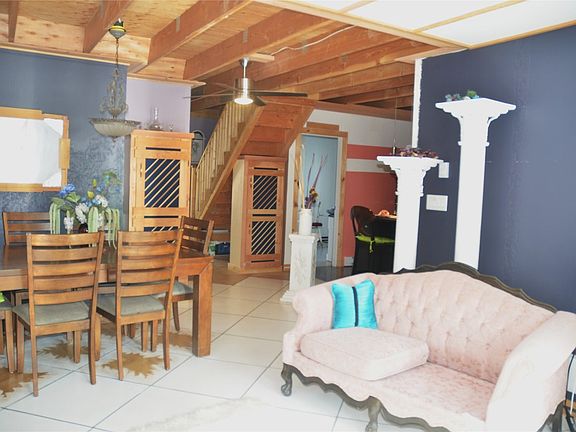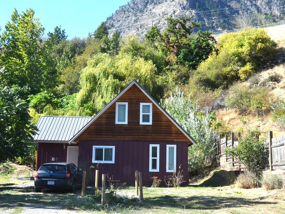 Custom designed & architecturally unique. Artistically designed and decorated. 1,190 square feet, chalet style home with ICF foundation, lots of windows for bright and sunshiny home, small bedroom down with access to back patio, upstairs bedroom is full loft and is bedroom plus office, with minimal changes it could easily be 2 bedrooms, floors are all wood, some are wood plank and others are 5/8 plywood squares made to look like large tiles, multiple layers of finish makes it ideal for pets and wear and tear, artist Seller hand painted designs on dining room floor, very pretty and durable. Nice kitchen with island and windows with view to Fountain Ridge Mountains, unique and interesting ceiling finishes with mix of open beams, scalloped edges and batten in living room, custom wood trim throughout. Property is large .79 of an acre lot, mostly level and mostly fenced, pear tree, 2 raised beds and lots of room for gardens and RV parking. Building plans, permits, geo-technical report, survey certificate all available in supporting documents." See DOL building files for ALL specifics on property. Quiet location just minutes to park, shopping, Fraser River, Seton Lake,great fishing and hiking trails. Lovely, friendly community with rec centre, pool, ice rink, great library, hospital, medical clinic, dentists, Buy Low Foods, 2 pharmacies, Fields, Red Apple Store, hardware store and lumber yard and much more. BUYERS MUST REVIEW ALL SUPPORTING DOCUMENTS.