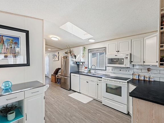 Perfect for first-time buyers, downsizers, or families alike, this home offers the rare opportunity to own both your land and home in the friendly community of Aberdeen Glen Village. Inside, you’ll find 2 bedrooms, including a spacious primary bedroom complete with a walk-in closet and 4-piece ensuite. A second spacious bedroom and an additional full bathroom adding convenience for guests or family. The kitchen features updated counters and backsplash and opens to a bright, welcoming living room. A dedicated laundry room and fully enclosed mudroom provide plenty of storage and year-round functionality. Outside, enjoy 2 storage sheds, ample parking, an RV plug, and an additional RV parking area within the complex. Recent updates include a newer hot water tank and furnace, offering comfort and peace of mind. With a low bareland strata fee of just $141.39 per month and pet-friendly bylaws (with restrictions), this community is as practical as it is welcoming. Enjoy nearby biking and hiking trails, plus you’re just a 5-minute drive to Aberdeen Mall, restaurants, and shopping. All measurements are approximate and should be verified by buyers if deemed important.