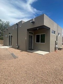 This is a true find. Newly build, contemporary design in the heart of Santa Fe. Centrally located for easy access to all amenities next to defined Fitness and behind the Genoveva Chavez Community Center. This lot is the most secluded in all of Kachina Ridge with green and open space to the front and side. The floor plan is open and easy, the door openings are 36" wide making an ADA-friendly living space to age in place. New fencing is being installed now, and the driveway is to be concrete and poured in the following weeks. The builder will add a rooftop viewing deck for an additional $25K. Some photos show a future deck. It really is a special find. Take a look at this one, you will not want to miss it.