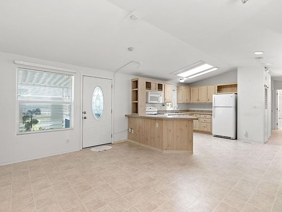 This three-bedroom, two-bathroom mobile home is located in a senior 55+ park at Shoreline Mobile Estates in Live Oak. The property offers approximately 900 square feet of living space. The higher ceilings and skylights allow for a light and bright interior. The home features a newer roof (replaced in Nov. 2024), providing added protection and peace of mind, indoor laundry hook ups, walk-in closets in the bedrooms, and a covered carport for 2 vehicles. Residents can enjoy the convenience of being close to the beach as well as nearby shopping and various amenities. A detached shed/storage room provides additional space for storage or hobbies.The community offers an on-site pool, providing an opportunity to do some laps or just enjoy the outdoors. There are also 3 Community Clubhouses and area designated for washing vehicles. This is a great place to call home and start enjoying easy living.