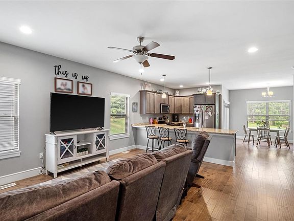 This beautiful ranch-style home is on a finished walkout lot and is truly stunning in the heart of O'Fallon. With 9' ceilings on the main level and 9' ceilings on the finished lower-level living area with every imaginable upgrade! Upgrades include the floors, kitchen cabinets, granite tops, appliances, light fixtures, and bathrooms; all tastefully done. The home has an open floor plan with 3 bedrooms and 2-bathrooms on the main level and a covered deck off the eat-in kitchen. The lower level has a bedroom and bathroom with a sizeable living area. There is still plenty of space for storage as well. This property is situated on one of the nicer walk-out fenced-in lots at the end of the subdivision which backs up to the timber. Great location! Close to highways, Scott AFB, and located directly on the MCT Trails. Move in ready to enjoy and do nothing! Book a private tour now, you won't want to miss out!