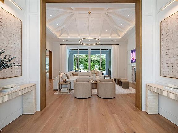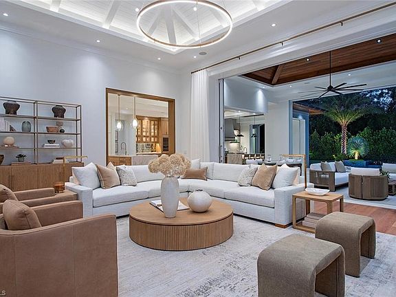 Presenting an exceptional new residence by the distinguished collaboration of Crayton Road Development, Falcon Design, Van Emmerik Custom Homes, and R & Co Designs. Set on a sprawling oversized lot with coveted western exposure, this exquisite home is ideally located in the heart of Coquina Sands—just moments from the pristine beaches, Old Naples, and the highly anticipated Four Seasons Resort. Nestled on the serene Nautilus Road, within a high and dry (X-500) flood zone, this property offers the ultimate in privacy and convenience. Boasting over 5,000 square feet of thoughtfully designed, single-level living space, this residence features 5 generously proportioned bedrooms, 5 full/1 half baths, and a spacious three-car garage. The meticulously curated floorplan ensures effortless flow between the grand living areas, while expansive windows bring the outdoors in, showcasing the lush, tropical landscape that surrounds the property. Designed for the ultimate in entertaining and relaxation, the resort-inspired outdoor living area includes a state-of-the-art kitchen with island, large heated saltwater pool and spa, and an expansive yard—perfect for hosting family and guests. Inside, no detail has been overlooked, from the gourmet kitchen with custom hood and high-end appliances to the service kitchen that provides functional elegance. The home is adorned with beautiful Tavolato Veneto wide-plank oak flooring, intricate millwork, and stunning natural stone countertops throughout. Additional highlights include two elegant fireplaces, generator, and refined ceiling treatments that complement the home’s exquisite architectural details. Designed with luxury and longevity in mind, this property experienced zero flooding from Hurricane Ian or any other recent weather event, underscoring its resilience and premier location. Scheduled for completion in June 2025, this is a rare opportunity to acquire an unparalleled residence where every finish has been meticulously selected by a team of renowned professionals. An unmatched blend of style, sophistication, and setting, this is truly a masterpiece in the making.