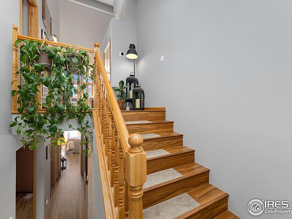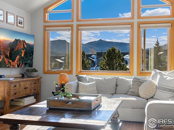 This beautifully updated bi-level condo in Ranch Meadow Subdivision combines modern convenience and mountain living. It features fresh paint, designer touches like an RH Sputnik pendant in the foyer, RH Rococo chandelier in the dining room, and RH beaded Venetian mirror in the primary bathroom. The custom tiled primary shower with a rain head adds luxury, while updated lighting and smart features enhance functionality.Smart home upgrades include Leviton smart switches, Philips Hue lights indoors and outdoors, Nest thermostat, Nest smoke/CO2 alarms, an Arlo smart doorbell, MYQ smart garage interface, and Apple Home integration. Enjoy incredible views of Twin Sisters, Mount Olympus, Lumpy Ridge, and a partial Divide from two decks, one of which is unique to just nine units in Ranch Meadow. South-facing decks with natural gas hookups allow for year-round enjoyment and entertaining. Each secondary bedroom has private deck access.The kitchen includes an industrial pot rack and high-end appliances. Storage options abound with large closets, bonus space under the stairs, and a generously sized secondary bathroom closet. A 90 articulating TV mount enhances flexible living space.Located within walking distance of Lake Estes Marina and minutes from downtown Estes Park, this home provides easy access to recreation, shopping, and dining. Commuting via Hwy 34 to the Front Range is convenient.Don't miss this meticulously updated home offering smart technology, designer finishes, and breathtaking mountain views. Make 1555 Raven Circle E your Estes Park retreat today!