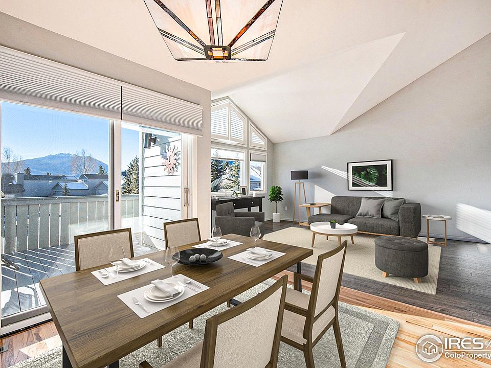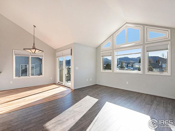 You are not required to do anything! This recently updated townhome style condo is in a terrific location and close to many amenities. The home not only has mountain views, but it is also near downtown Estes Park. Fresh paint throughout, new laminate flooring, refinished wood floors (no carpet), all new stainless appliances and an oversized stainless sink are among the updates. You'll appreciate the extra seclusion that comes with being an end unit and one of the larger ones in the "Ranch Meadows Community". Central air conditioning is an added plus! Upon entering the home the open floor plan and vaulted ceilings create a seamless flow throughout the living room and dining room. Enjoy the natural light streaming in through the windows during the day and relax by the gas fireplace at night. Imagine starting your day with a cup of coffee on the deck, in the magical Rocky Mountains, while watching the elk pass by. The main floor boasts a tastefully updated dual vanity bathroom with a designer barn-wood door and a spacious primary bedroom with a walk-in closet. The lower level has two bedrooms and full bath with access to the lower deck so your guests can enjoy the surroundings. Step outside and experience neighboring Lake Estes, which has walking and bike pathways that demand exploration for individuals who enjoy an active lifestyle. Head into Rocky Mountain National Park to take in the beauty and unlimited hiking. Don't pass up a fantastic opportunity to acquire this home which offers a stress-free existence thanks to its low-maintenance features. Living-room and Primary Bedroom are virtually staged.