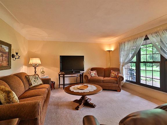2.73 acres conveniently located at the edge of town. Brick ranch with the comforts of main floor living. Eat in a kitchen with large windows overlooking the park-like backyard. Primary suite with his and hers closets and a full bath. Two generous-sized guest bedrooms with oversized closets. The living room offers an abundance of natural light and a wood-burning fireplace. On the lower level, there is plenty of space to grow, there is a bathroom already in place, and a recreational area with a heatalator fireplace with the capability to heat the entire home if needed. Outdoors there is plenty of room to roam and entertain friends and family with the 2.73 acres, the pond, and the outbuilding close by. Updates include: Roof 8-10 years, furnace ’19, AC 5-6 years, septic maintained 23, and water heater ’19. Home being sold "as is".