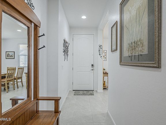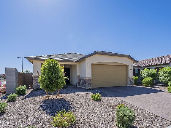 Discover modern living in this beautifully designed single-level home featuring an open floor plan that seamlessly connects the kitchen, dining nook, and great room perfect for entertaining. This 3-bedroom, 2-bath residence offers upgraded bathrooms with Jacuzzi® brand tubs, security doors, and all-new stainless steel kitchen appliances.Elegant 17x17 tile flooring, quartz countertops, and modern white cabinetry add a touch of sophistication throughout.Enjoy effortless indoor-outdoor living with a covered patio, plus resort-style community amenities including a pool, spa, pickleball courts,and playground.Conveniently located near Goodyear Ballpark and Estrella Mountain Regional Park,this turnkey home blends comfort, style, and convenience in Goodyear's most sought-after neighborhoods!