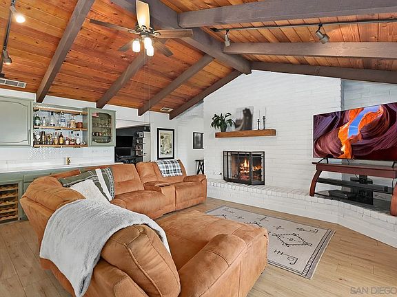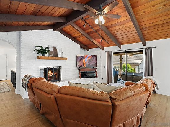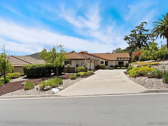 Wonderful single-story home in exquisite San Diego Country Estates. Take in the panoramic views of the golf course, pond, Majestic Mountains and valley. This home features an excellent curb appeal, all new flooring and paint, new outside composite decks with cable fencing, remodeled kitchen and wet bar, new water heater, new refrigerator, and dishwasher. Enjoy all the amenities that SDCE offers including clubhouse with hotel, restaurant and sports bar, pool and hot tub, lighted pickleball and tennis courts, driving range and 18 hole golf course. Amenities also include Equestrian and Western horse centers, Ramona Oaks Park with pool bandstand and dog park and miles of horse/walking trails throughout the development. This custom built 3 bed 2 bath home features LVP flooring throughout the house. The spacious sunken living room with floor to ceiling stone fireplace with raised hearth greets you as you enter the home with mountain and valley views. The family room features the same dramatic fireplace, with cedar beamed vaulted ceilings and a wet bar. Another slider with side deck to enjoy those amazing sunsets and sunrises. The roomy kitchen features quartz counters, breakfast bar, center island and adjacent to another slider door featuring a covered patio and composite deck. The master suite includes a walk-in closet with built-in organizers and attractive bath with soaking tub separate from shower and double sinks. The additional two bedrooms share a roomy bath with combo tiled tub/shower. Large finished 3 car garage. Don't miss out on this one!