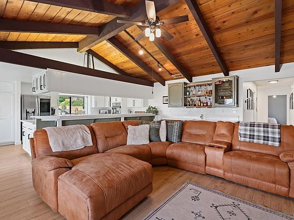 - Bar, Beamed Ceilings, Built-Ins, Ceiling Fan, Kitchen Island, Living Room Deck Attached, Low Flow Toilet(s), Open Floor Plan, Pantry, Recessed Lighting, Remodeled Kitchen, Shower, Shower in Tub, Stone Counters, Storage Space, Sunken Living Room, Wet Bar, Phone System, Unfurnished, Cathedral-Vaulted Ceiling, Kitchen Open to Family Rm