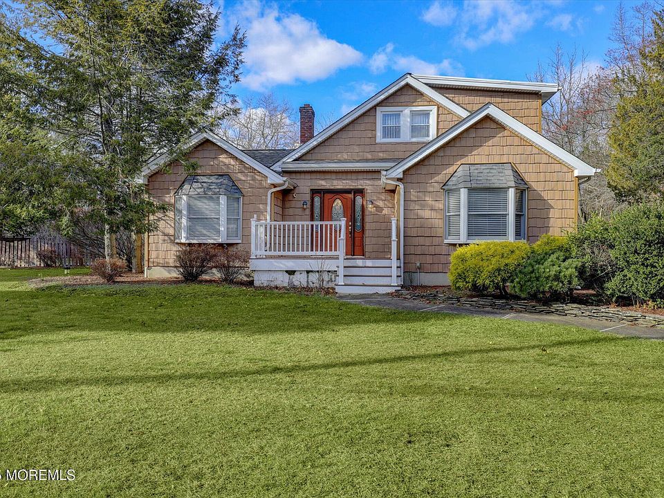Professionally landscaped 3 Bedroom 2 Bath Cape nestled on a 1+ acre wooded lot with circular driveway, interior features updated kitchen with a center island including a built-in wine fridge, stainless steel appliances, first floor primary bedroom and full bath, full basement, gas furnace approx. 6 yrs, newer HWH and water purification system. Exterior features 20x46 in-ground pool with updated pool pump, newer well water pump. Perfect yard for entertaining featuring an outdoor Kitchen/Bar area, patio w/covered awning and a 2 car detached garage with a room above.