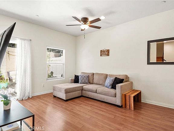 Welcome to your new home in the heart of Anaheim! This exquisite 2-bedroom, 2.5-bath townhome offers modern living with a touch of elegance. Step inside to find laminate flooring throughout, highlighted by high ceilings with recessed lighting that creates a warm and inviting ambiance. The kitchen looks out over your back patio and is equipped with sleek stainless steel appliances, granite counters, and a walk-in pantry. Both upstairs bedrooms are primary suites, each featuring spacious walk-in closets. The main primary suite boasts a luxurious jacuzzi tub for ultimate relaxation and dual sinks for ease getting ready. Convenience is key with an in-unit laundry room, 2-car attached garage, and central AC/heat. Walk through the sliding doors and enjoy the large patio, perfect for entertaining or simply unwinding. The community features gated entry and a picnic area. This townhome truly has it all, offering a perfect blend of style, comfort, and functionality. Conveniently located near shopping, restaurants, freeways, and Disneyland.
