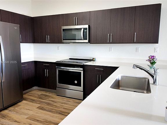 Beautiful move-in ready 2-story villa perfect for families! Features 3 spacious bedrooms, 2.5 baths, and 2 assigned parking Spaces. Enjoy family meals in the upgraded kitchen with quartz countertops and stainless-steel appliances. Porcelain tile flooring throughout, plus impact windows and doors for safety. Community offers a clubhouse and pool—great for kids and gatherings. A warm, welcoming home in a family-friendly neighborhood!
