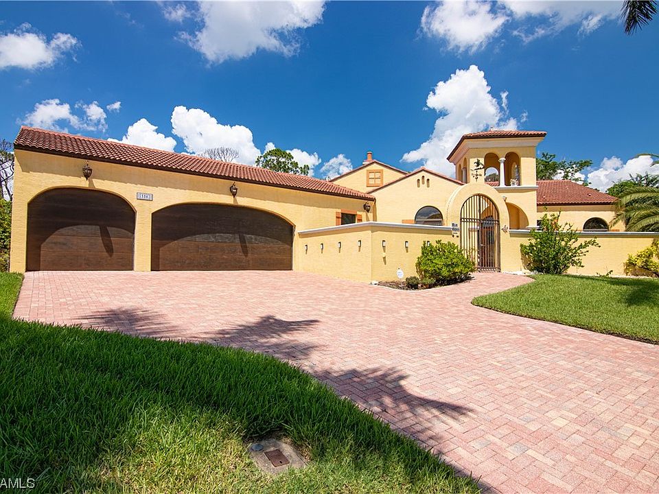 LIVE THE FLORIDA LIFESTYLE !!! LUXURIOUS EUROPEAN TUSCAN STYLE CUSTOM BUILT MASTERPIECE BUILT ON ELEVATION !!!! NOT IN A FLOOD ZONE. LOCATED IN RELATIVE SECLUSION ON A QUIET CUL DE SAC FOR PRIVACY. SOARING CATHEDRAL CEILINGS WITH WOODEN BEAMS AND 10 TO 14 FOOT CEILINGS AND 8 FOOT DOORS. OVER SIZED LOT, SOLAR HEATED POOL THAT WRAPS AROUND THE CORNER WITH DECORATIVE FIGURES AND WATERFALLS, WITH SCREENED LANAI AND OUTDOOR POOL SHOWER, FLORIDA THEMED CUSTOM STAINED GLASS WINDOWS IN AND DOORS IN ENTRANCE, MASTER BATH, AND LIVING ROOM, 18 X 18 CERAMIC TILE OR WOOD FLOORS, NO CARPET, SPACIOUS COURTYARD IN FRONT WITH 2 SITTING AREAS, PROPANE FIRED FIREPLACE, DRYER, STOVE, AND WATER HEATER, NEW VERANDA ROOM A/C IN 2022, ALL AROUND SUN SHADES IN LANAI, SPACIOUS MASTER BEDROOM SUITE, BIDET IN MASTER BATH, IMPACT RESISTANT GLASS IN FRONT AREA OF HOUSE, MARBLE STATUE IN THE GARDEN AREA, LUSH LANDSCAPING ENSURES PRIVACY. 3 CAR GARAGE, THIS ONE OF A KIND LUXURIOUS HOME BOASTS MORE THAN 2,267 SQ FT UNDER AIR, AND MORE THAN 5003 TOTAL SQ FT. JUST MINUTES TO SHOPPING, ENTERTAINMENT, RESTAURANTS, AND JUST A SHORT DRIVE TO THE WORLD FAMOUS BEACHES OF SW FLORIDA. SEE IT TODAY !!!!