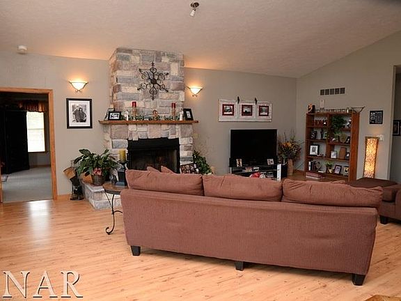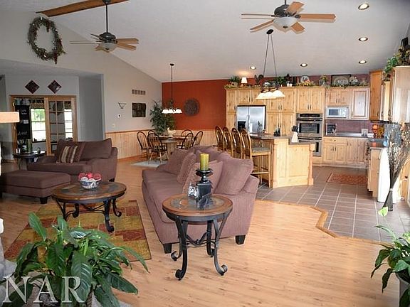 Secluded and quiet! Come fall in love with this 4 bedroom, 3 bath home located near Clinton Lake. Enjoy the wrap-around porch while watching the abundant wildlife or relax in front of the grand stone fireplace. This home features an open floor plan and a finished basement complete with bar and game tables for entertaining. Main floor laundry for convenience. Office on main floor has closet and could easily be used as a 5th bedroom. 36 X 44 shed on property could be used for horses or a workshop...electrical not ran to shed. Purchase this home and you will get all the appliances, Ping Pong table, Air Hockey Table, the barstools in the basement and a porch swing to enjoy. Call for a showing today!