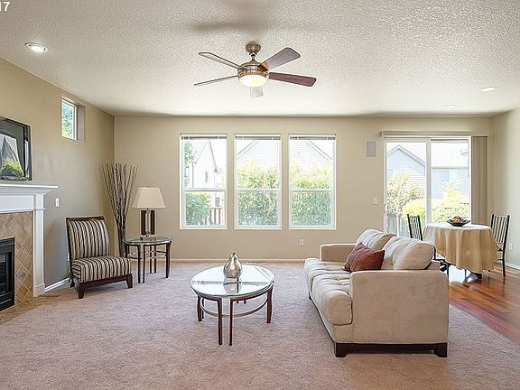 CENTRAL AC! Immaculate home in the Clackamas HS dist. features a great-room w/gas fireplace, cherry hardwood floors, island kitchen & slider to backyard w/new 30-foot patio. Upstairs: three bedrooms + loft + bonus room! This neighborhood features a park w/play area & is minutes to the Clackamas River, new Fred Meyer shopping center, New Seasons, Clackamas Twn Cntr, MAX and I-205. Surround sound & lots of extras!