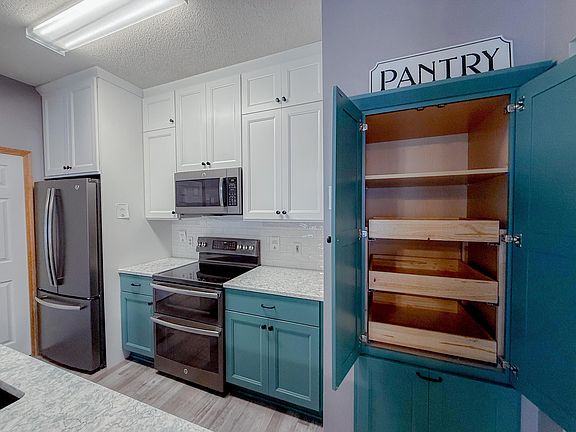 quartz countertops, backsplash, breakfast bar, and pantry with pull out drawers. Brand new carpeting and