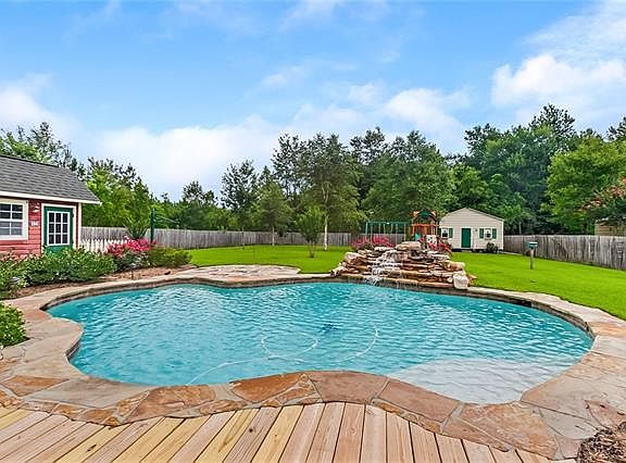 Back on the market due to financing. BACKYARD PARADISE! Relax in the beautiful saltwater pool with waterfall. Over 975 sq ft of wooden deck space for entertaining. 400 sq ft workshop. 3 bd 2 bath traditional home with open floorplan. Tray ceiling in master bedroom and master bath features his and her sinks and double closets.