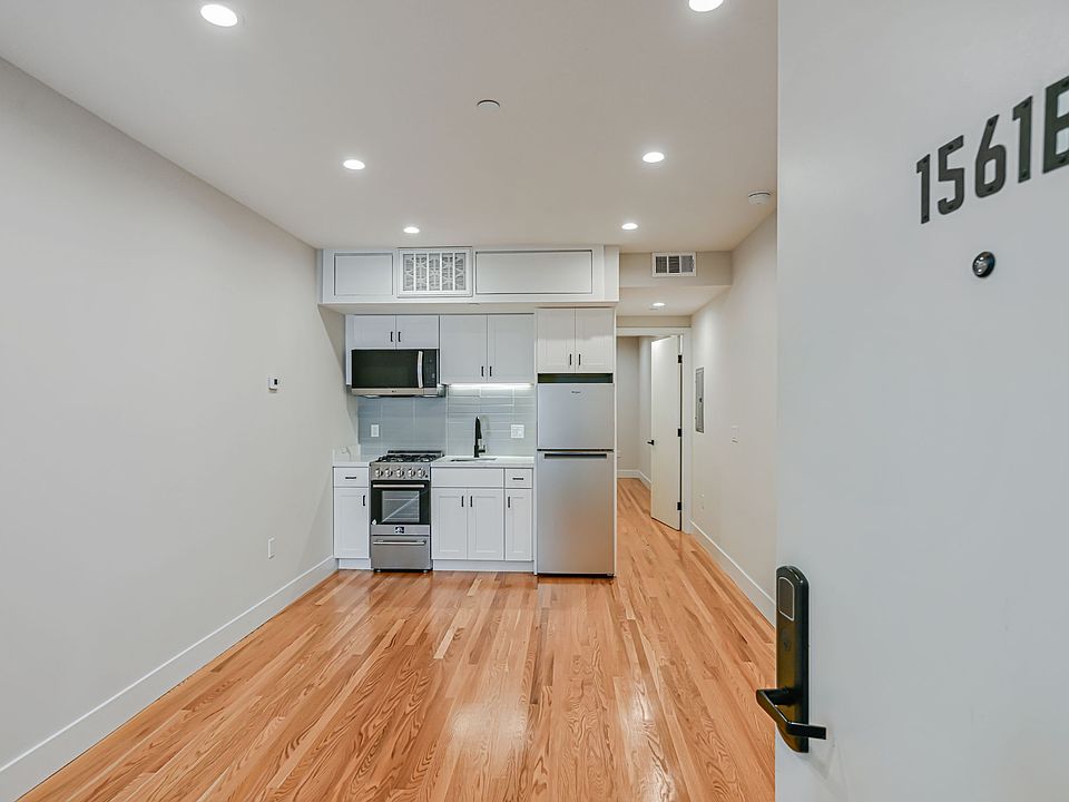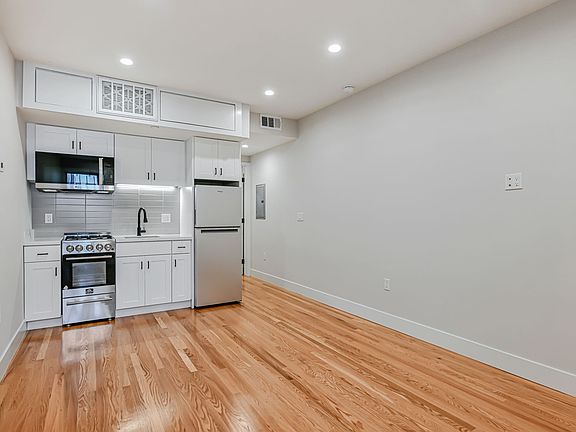 This brand new ground-floor one bedroom, one bath has been fully remodeled with modern finishes throughout and its own private washer & dryer. The kitchen features new shaker cabinets with stylish black pulls, granite counters, stainless steel appliances, and a sleek tile backsplash. Hardwood floors and recessed lighting run through the main living area, creating a bright and welcoming feel. The bathroom is upgraded with modern tile, a frameless glass shower, and matte black fixtures. Additional highlights include a good-sized bedroom, a smart door keypad entry system for convenience and security, and fresh neutral paint to complement any style. Perfect for someone seeking a move-in ready home with efficient design and high-end details.