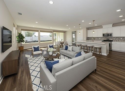 Adorable single-story home with PAID SOLAR located in a highly desirable 55+ gated community! This 2-bedroom, 2-bathroom home offers an open floor plan with a versatile den that can also be used as an office. The kitchen is beautifully upgraded with quartz countertops, custom backsplash, pendant lighting, and stainless steel appliances—including refrigerator, washer, and dryer. Additional upgrades include recessed lighting throughout, upgraded flooring, and a spacious primary suite featuring a large custom-tiled shower.