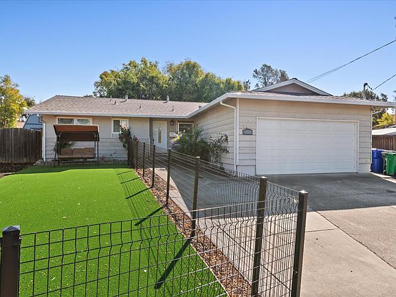 Super quiet cul de sac location in quiet and solid family friendly neighborhood in Southeast Napa Wine Country. Three bedrooms, two bathrooms, with master bedroom suite. Kitchen has recent appliances and super cute kitchen nook. Lots of light. Living room with classic brick gas fireplace and upscale wood style flooring. Convenient air conditioning to keep cool in the summers. Newer dishwasher, stove is in good condition. Newer heater, only two years old. Newer roof only 5 years new. Convenient, attached two car garage. Full foliage, very nice trees. Ample back yard on each side of the house. Tough shed, gazebo, sauna, nice outdoor areas. Dog run on the side of the house. Garden shed next to the garden.
