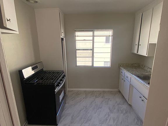 This top level one bedroom is bright with wood floors, tile and new carpet in the bedroom . The kitchen has gas stove and the apartment come with a ac & heater. There is one assigned parking spot. The building has onsite building manager, laundry coin & app operated and sparkling pool. Applicants must have 600 plus credit score, positive rental history and make 3 times the rent amount in monthly gross income. Utilities are not included. This apartment is ready for immediate move in. We can only hold this apartment upon approval for up to 2 weeks before lease start. Utilities are to be paid by tenant. 1 year lease. 1 assigned parking spot