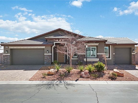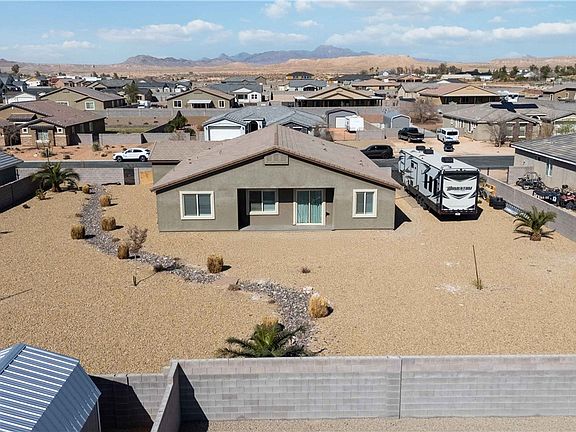 Welcome Home to Gorgeous Logandale! Escape the hustle and bustle in this wonderful community just a short 45 mins from Vegas. Absolutely stunning, hard to find 1 story situated on over 1/2 an acre! 3 car garage with electric car charging station, Gated and paved RV parking with 110 electric hook up and clean out. Upgraded exterior elevation with stone, paver drives and walk ways. Spacious and open floor plan! Fantastic gourmet kitchen featuring slab granite counters, custom spice maple cabinets, huge walk in pantry, island/breakfast bar, built in oven and microwave. 4 big bedrooms with luxurious Primary Suite and bathroom. Guest suite with bathroom and separate entry from garage. Spacious Den and living room. Separate laundry room. Massive backyard with trees and desert landscaping! Covered paver patio! This home is a show stopper! Don't miss out!