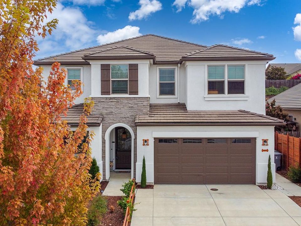 Welcome to 1557 Santana Ranch a Stylish Anderson Home in one of Hollister's most sought-after neighborhoods. This spacious 3-bedroom home features a downstairs office/den with a full bathroom perfect for guests or a possible 4th bedroom. The open kitchen flows into the living room with a beautiful stone fireplace and boasts granite counters, a large island, abundant cabinets, stainless steel appliances including a gas cooktop, oven, and built-in microwave. Crown molding, larger baseboards, and laminate flooring add a polished touch throughout. Upstairs you'll find a loft area and a private primary retreat with a sitting area, spa-inspired bathroom with soaking tub, separate shower, dual sinks with granite counters, and a walk-in closet with custom shelving. The laundry room includes a sink for convenience. The backyard is thoughtfully landscaped with ample patio space, perfect for entertaining. Located on an elevated lot with community views, this home is close to walking trails and an elementary school within the highly desirable Santana Ranch community. Move-in ready with timeless finishes and plenty of flexible space this Anderson Home has it all!