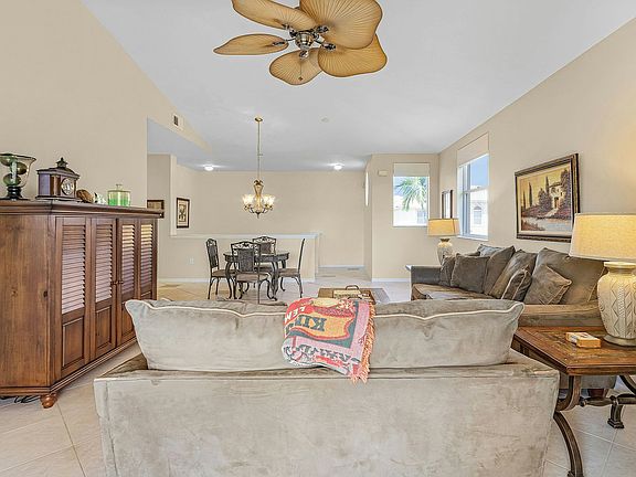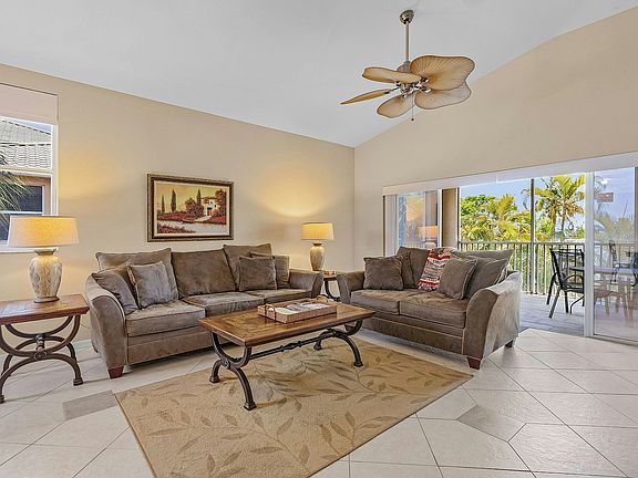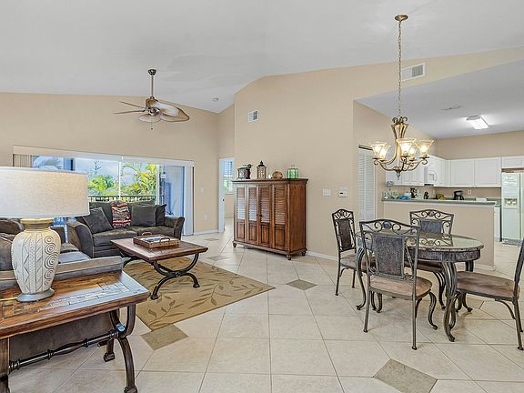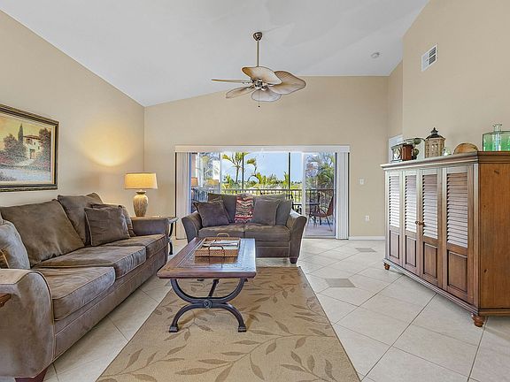 Experience comfortable living in this fully furnished 3-bedroom, 2-bathroom coach home, available September 1st as a turnkey furnished annual rental in the gated community of Bellamar at Beachwalk in Fort Myers. This practical property spans over 1,800 sq ft and features ground-level entry with an interior staircase leading to the second-floor living area. It's fully tiled and includes vaulted ceilings, overhead fans, and plantation shutters. The open-concept living space, which combines the living room, dining area, and kitchen, opens onto a fully screened balconyideal for relaxed evenings. The living room is equipped with a large flat-screen TV. A split floor plan offers privacy, with the master bedroom equipped with a queen-sized bed, an en-suite bathroom, and a large walk-in closet. The kitchen is fully equipped with full-sized appliances and includes a walk-in pantry with laundry facilities. A single-car garage with additional driveway parking is also available. The Bellamar community provides amenities such as a heated pool, sundeck, spa, clubhouse, and fitness room. For recreation, four bicycles, a ping pong table, a propane grill, and beach chairs are available for use. Located a short drive from Fort Myers Beach and close to local dining and shopping areas, this Bellamar coach home is an excellent base for a Southwest Florida getaway, ready for you to move in and start enjoying immediately.