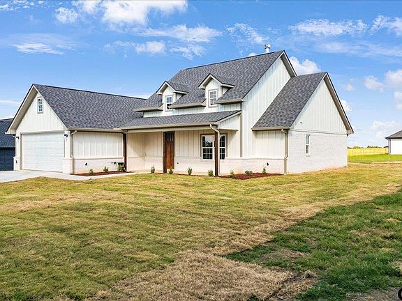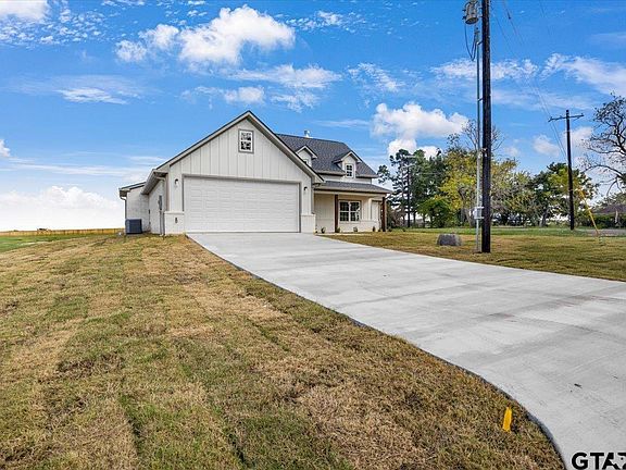 Brand-New Modern Farmhouse in Lindale ISD! This stunning new construction blends modern farmhouse curb appeal with thoughtful design and top-notch craftsmanship. Sitting proudly on a spacious corner lot, the home boasts a striking high-pitch roof with charming dormers, adding to its timeless character and giving you both room to roam and the option for a secondary entrance. Step inside to an inviting foyer that opens into a soaring cathedral-style living room highlighted by impressive exposed beams and rich maple cabinetry for that perfect natural-modern look. With just under 1,900 sq ft, the open-concept layout is both airy and functional, while the builder’s attention to detail shines through every trim and finish. Enjoy the outdoors from not one but two oversized covered patios — perfect for entertaining or unwinding in comfort. The split floor plan offers privacy with a true master retreat featuring a wrap-around layout that connects directly to the laundry room. The spa-like master bath includes double vanities, a generous walk-in shower, a standalone tub, and an oversized walk-in closet. Every detail, from custom millwork to the warm and inviting finishes, makes this home a showstopper. Located in the highly sought-after Lindale ISD, this property is a rare find. Don’t miss out — schedule your showing today!