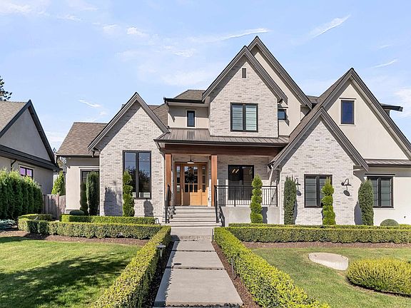 Dag Design, Custom Built, Interior Design by Sarah Gallop. Former BC Children's Hospital Lottery Prize home, Original owners, 6 bedrooms, 5.5 bathrms,18-foot vaulted ceilings to form a 5,744 sq. ft. modern farmhouse style house in an ideal family setting on a 10,000sf Lot. Main floor entry hard wood flooring with Chevron design, living room with gas fireplace, dining room with built-in cabinet, Large eating area with built in cabinets, doors leading out to a entertainment size deck with outdoor kitchen. Chefs kitchen gas cook top, steam oven, wok kitchen, Family room with post beam vaulted ceiling, Upper 4 bedrooms all have ensuite, Lower level is finished with a guest wing, gym, steam shower, theatre, bar, and games room & walk out back yard. Don't miss out on this luxury opportunity!