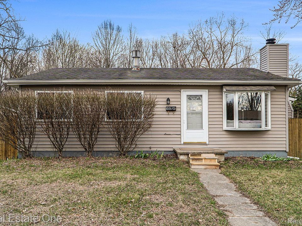 Completely remodeled in 2025, this stunning ranch home offers an open-concept design with a bright, spacious layout. The living room showcases beautiful luxury vinyl plank flooring, complemented by a bay window that brings in plenty of natural sunlight and features a cozy limestone fireplace. The kitchen is a showstopper with the same luxury vinyl flooring, elegant granite countertops, a large island with pendant lighting and seating, soft-close white cabinets, a ceramic tile backsplash, and brand-new stainless steel appliances. A door from the kitchen leads to a wrap-around deck, ideal for outdoor meals and relaxation. Each of the three bedrooms features new carpet, and the bathroom has been stylishly updated. This remarkable ranch property is situated on a large fenced corner lot, bordered by woods for added privacy. It includes an oversized garage, vinyl windows, and many additional features. This home is ready for you to move in!