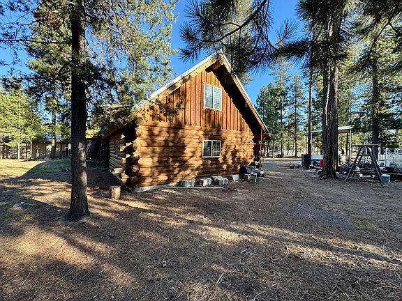 Cozy 2 bedroom, 2 bath log home built in 1997. It offers 1,481 sq ft of living space and 364 sq ft of bonus room above the double car garage. The home's vaulted ceilings, laminate flooring with carpet in Down stair bedroom, and spacious laundry room add comfort and convenience. The primary bathroom has a double vanity and walk-in shower. Enjoy peaceful mornings on the covered front deck or relax in the warmth of the sunroom. Spend the evenings by the crackling fire pit. The fully fenced .95-acre lot offers room for adventures or quiet moments. An RV cover is ready for your travels. This property is a welcoming retreat you'll love to call home.