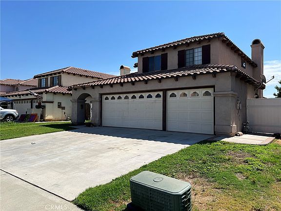 Come see this beautiful 2-story home 4 bedrooms 2.75 bathrooms with down stairs tile flooring and a laundry room down stairs with a down stairs bedroom with down stairs bathroom for anyone that can't walk upstairs, home has tile roof, roof was installed 3 years ago. New A.C condenser just installed in October 2023. Lot size 5227 Sqft, located in the beautiful growing city of Moreno Valley in a wonderful peaceful community with many amenities. The community offers a gorgeous swimming pool with spa, club house, elegant recreational center, fitness room, splash park for the kids, basket ball court, lake were you can fish or paddleboat, the pool is waiting for you to enjoy this Hot Summer that's already here, this home has a 3-car garage with direct access to the home and additional parking space in front. Gorgeous open patio with slab in the back yard already build for you with some beautiful masonry work on the back and the side of the house. Low HOA and Low property taxes. You have to come see it for your self to appreciate the home and the location.